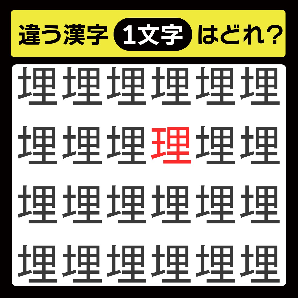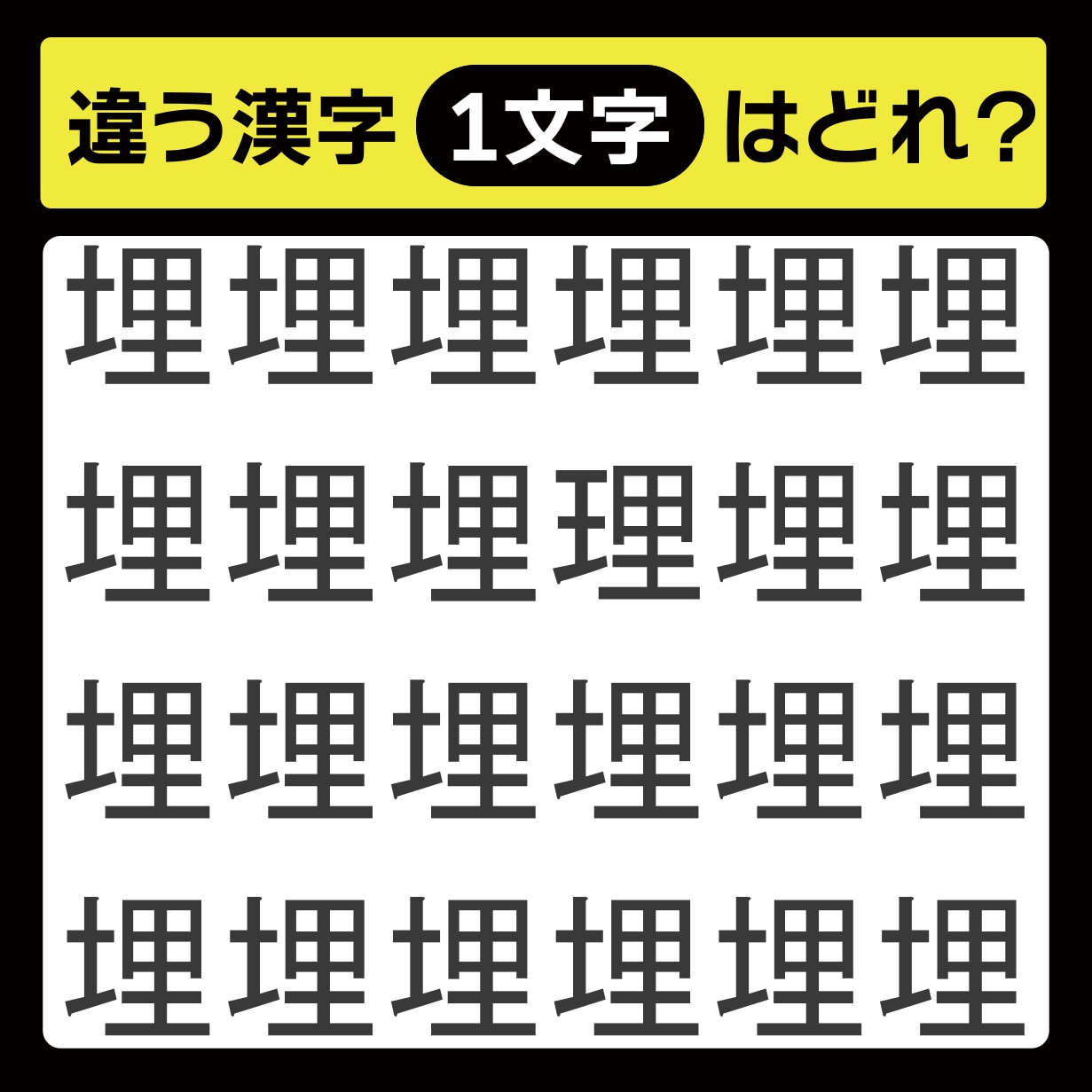 違う漢字は、上から2行目、右から3番目の文字でした!