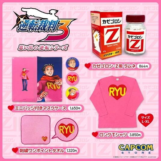 株式会社カプコンはカプコンタイトルグッズを多数取り扱った直営店舗カプコンストアにて、『逆転裁判3』のオリジナル商品「逆転裁判3 思い出の逆転シリーズ」を新発売いたします。