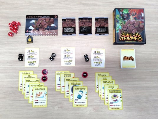 『災害ビースト・バトルアタック』は、「火災」「地震」「大雨」「強風」「熱中症」などの災害を“ビースト(怪獣)”に見立て、プレイヤーが力を合わせて危機を乗り越える防災学習型カードゲームです。