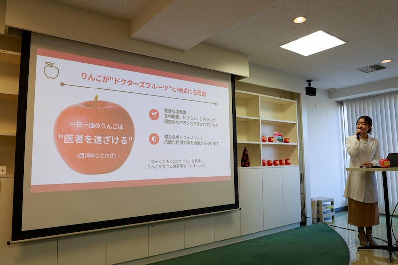 青森県産りんごの魅力について情報発信を行う一般社団法人 青森県りんご対策協議会は、11月5日の「 いいりんごの日」を前にして、11月4日(火)に、りんごの健康効果やおいしさを知るためのメディアセミナーを開催した。
