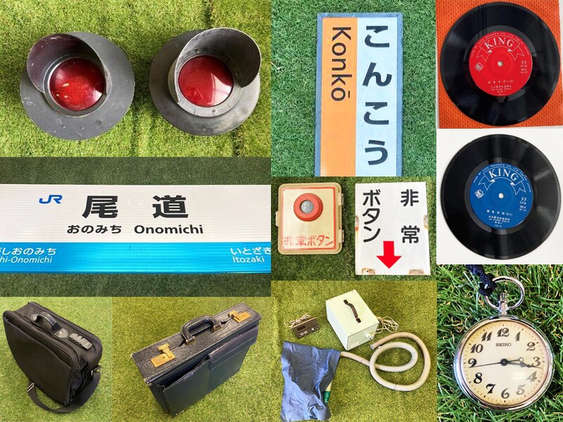 JR鉄道中古物品オークション:運転士用懐中時計、業務用鞄、駅名標など実際に使用されていた貴重な鉄道物品を出品。