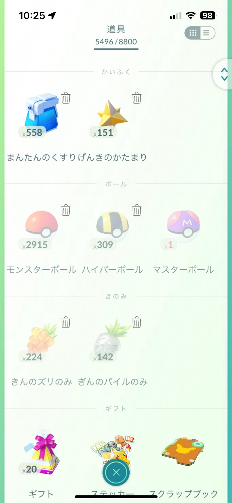そう。数百回単位でポケストップを回してもこんなもんです。