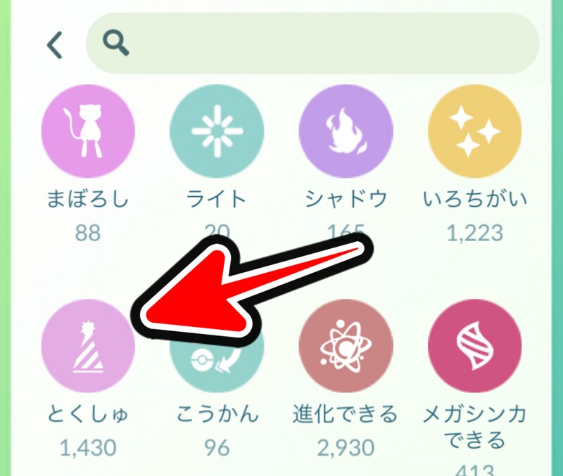 ▲検索欄から「とくしゅ」を選択します。