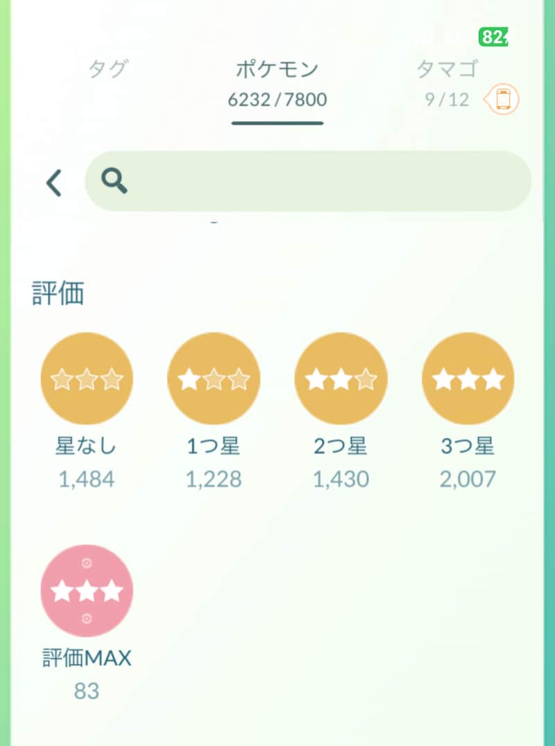 ▲ステータスの低いポケモンをまとめて表示するには“評価”のコマンドを使用します。星なしや1つ星をタップすると、ステータスの低い個体だけが抽出されます。