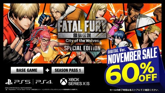 本日配信の「春麗」などが楽しめるシーズンパス1+ゲーム本編がセットになったコンソール版「餓狼伝説 City of the Wolves SPECIAL EDITION」が、今なら60%OFF!