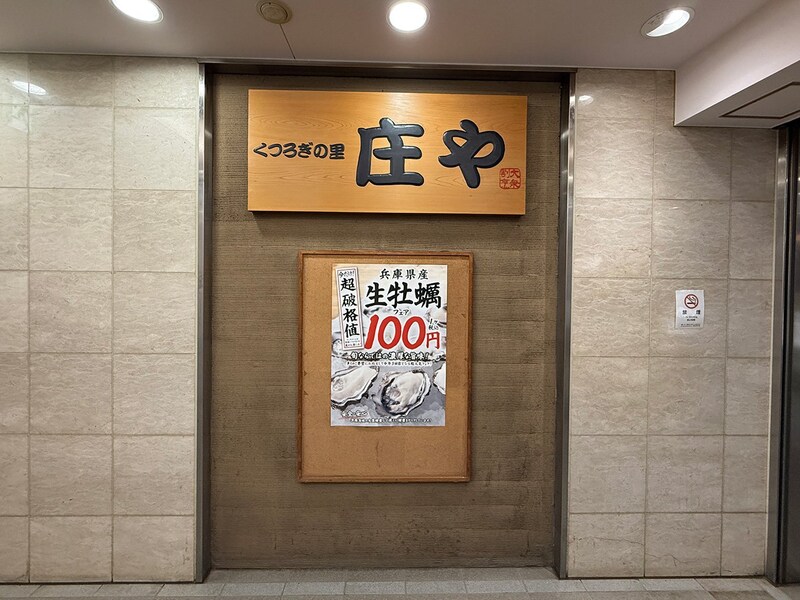 ということで、フェア初日から家から近い「庄や」に行ってきましたよ。店頭には生牡蠣フェアのポスターがバッチリ張られていました。安心して店に入ります。