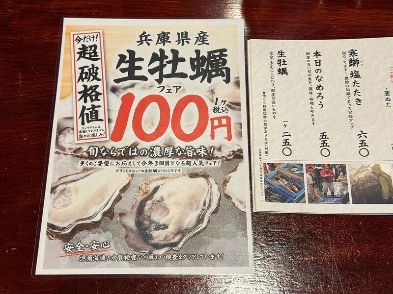ちなみに庄やではグランドメニューにも生牡蠣があり、こちらは1個250円。ただし、サイズはフェアの生牡蠣よりも大きめとのこと。つまり小ぶりのものがフェア用で提供されるというわけだ。