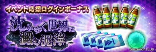 期間中のログインで、「空の因子」、「期限付きマッスルドリンコ」、「スキップチケット(罪)」など豪華報酬がもれなくもらえます。どうぞお見逃しなく!