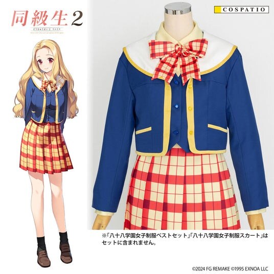 1997年発売の「同級生2(Windows版)」をベースに、2024年6月に発売された『同級生2リメイク』。公式キャラクターコスチュームのCOSPATIO(コスパティオ)ブランドより、公式監修のもと鳴沢唯たちが通う「八十八学園(やそはちがくえん)」の女子制服が登場。