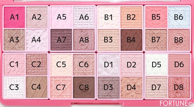 パレットには4世代のトレンドメイクをイメージした各8色、全32色がセット。