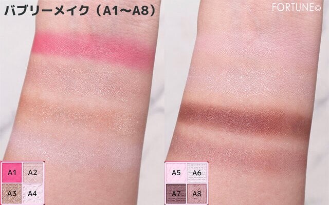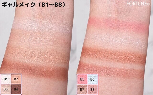 発色の濃淡のバランスも良く、ベースカラーからメインカラー、締め色、涙袋メイクに使えるカラーまで豊富に揃っているので、メイク初心者の方から上級者の方までどんな方でも満足できそうだと思いました!