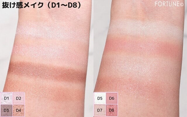 カラーによって、マット、繊細なパール、繊細ラメ、大粒ラメ...と質感が異なり、パレット1つでナチュラルメイクから華やかなアイメイクまで幅広く楽しめるのが魅力。