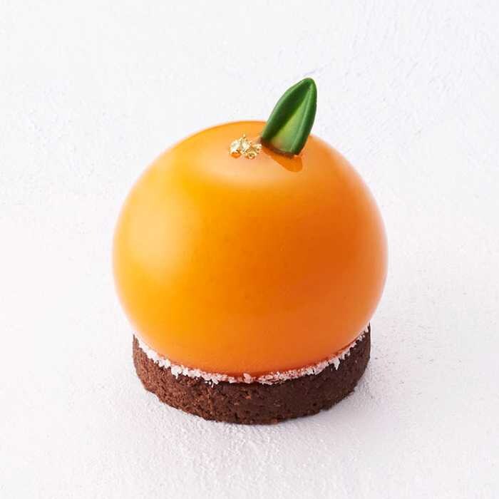 「冬蜜柑(温州みかんとショコラ)」860円は、旬の温州みかんの甘酸っぱさとショコラのコクが絶妙に調和。