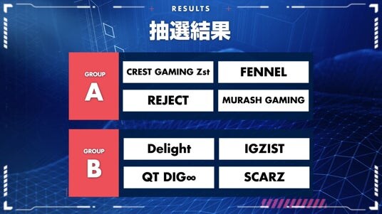 9/3(水)~9/7(日)に行われたオープンステージには17チームが出場し、トーナメントを勝ち抜いた「IGZIST」が、招待チームの「CREST GAMING Zst」、「Delight」、「FENNEL」、「MURASH GAMING」、「QT DIG∞」、「REJECT」、「SCARZ」と共に9/20(土)~10/2(木)の6日間に2グループに分かれてラウンドロビン方式(総当たり戦)でホーム&アウェイ戦を戦います。