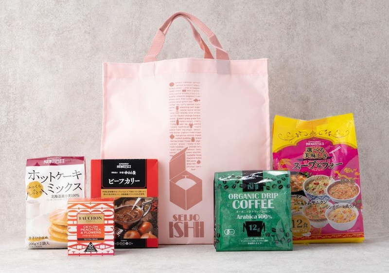 成城石井 ショッピングバッグ(パールピンク)/成城石井 オーガニックドリップコーヒー/FAUCHON フラワーピーチティー TB/成城石井 北海道産小麦100%使用ホットケーキミックス/成城石井 選べる美味しさスープ&フォー/成城石井&新宿中村屋 ビーフカリー