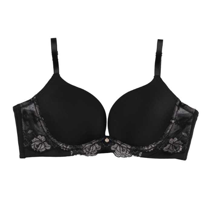 脇高設計で脇肉をバストに導き、すっきりとしたラインに。サイズごとに厚みを変えたモールドカップが自然なボリュームを演出します。