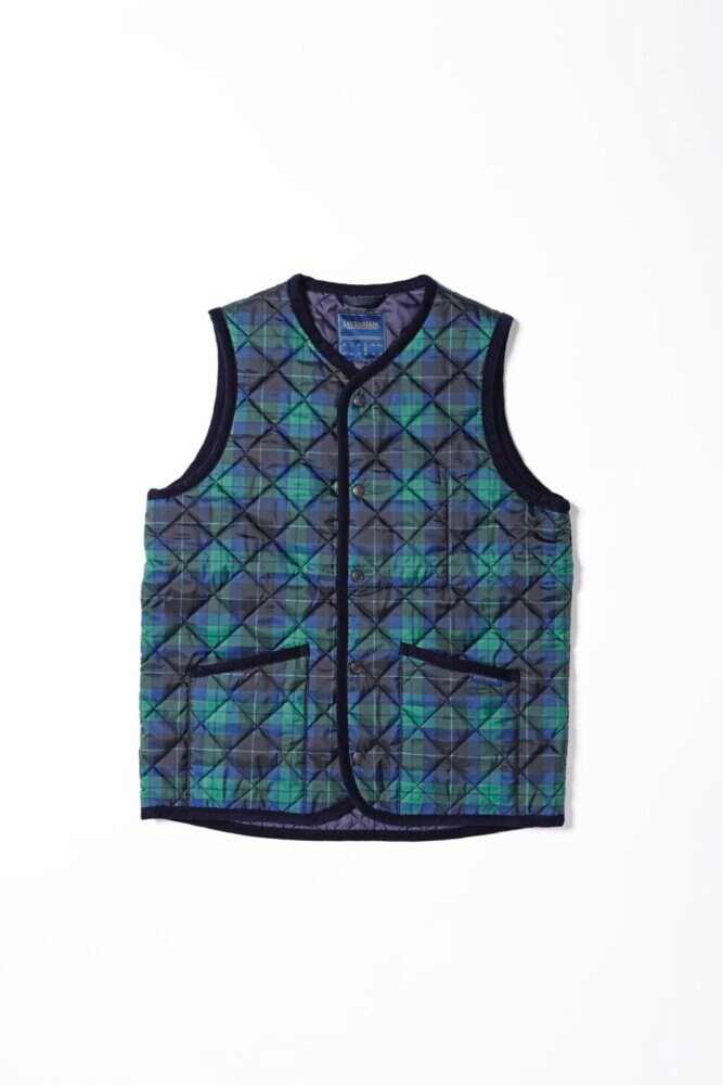 強度と撥水性に優れた「ラベンハム」オリジナルの生地を使用したジレ[ソーンハム]。シップス50周年を記念して作られたタータンチェックがあしらわれ、現代的なシルエットながらも上品さが漂う。4万8400円