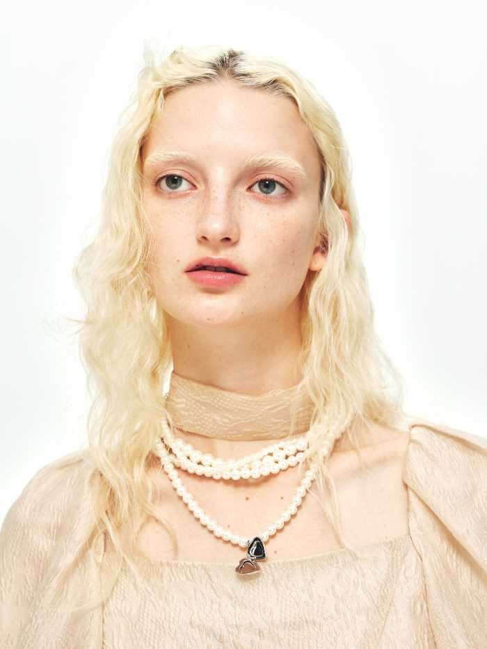 今季のテーマ“DOUBLE”は、異なる質感とムードを重ねることで生まれる新しい魅力を表現。フェミニンとマキシマリズムが共存するスタイルが印象的です。