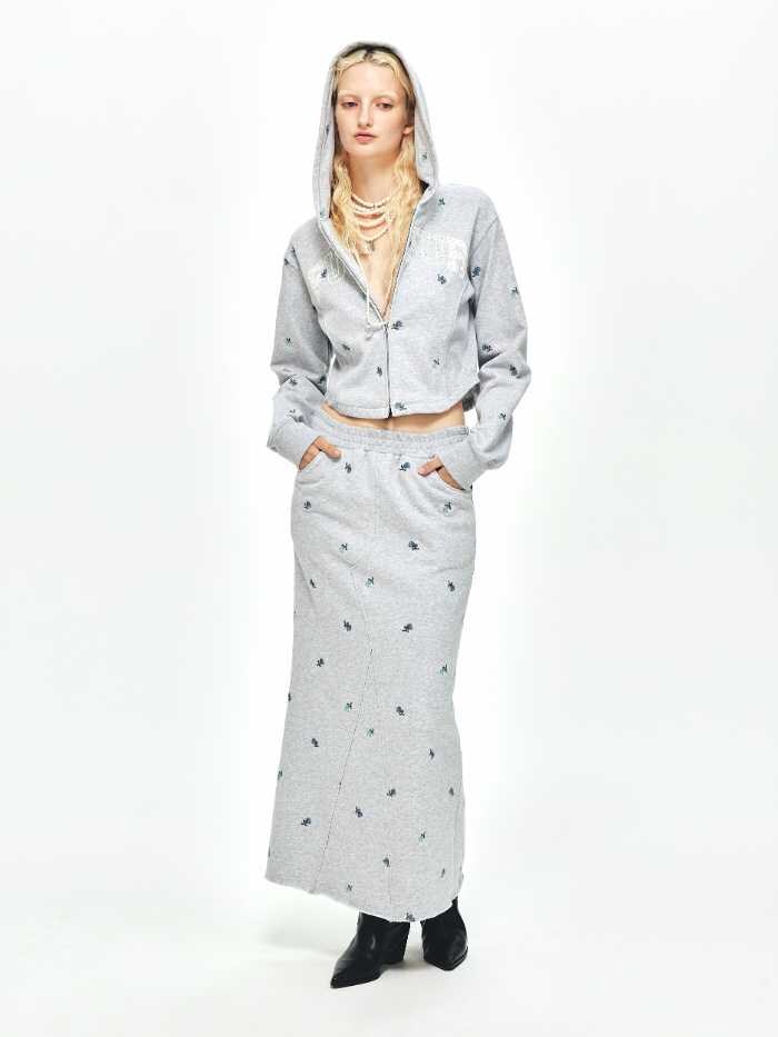 カジュアル派には、パーカー(¥19,800)とスカート(¥16,500)のリラクシーな組み合わせがおすすめ。