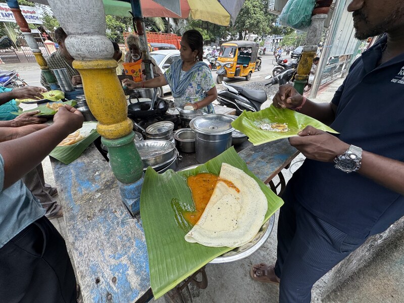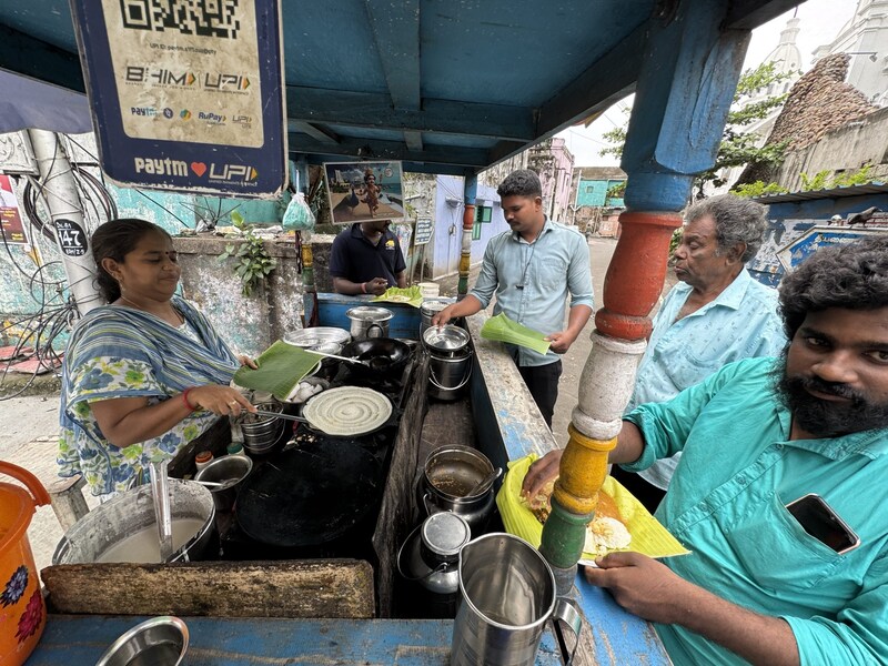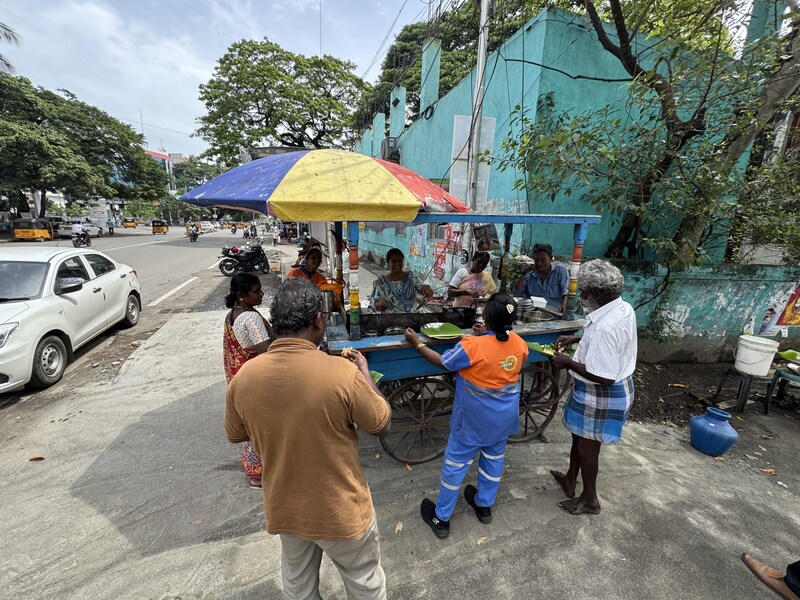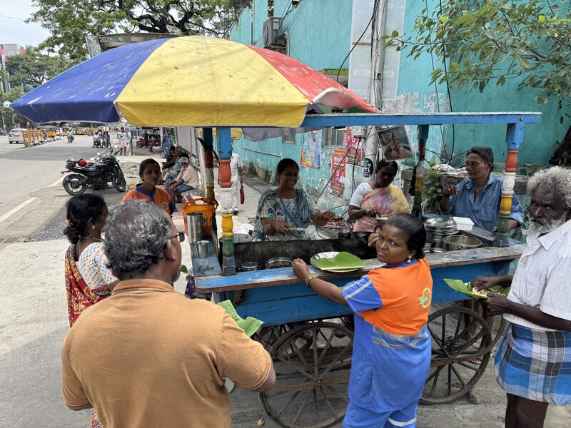 チェンナイ警察署の近くに、多くの人たちが訪れる屋台のカレー屋があります。インド人のお姉さんが店主で、営業時間がはじまると、多くのお客さんが訪れます。観光客は来ないと思われます。ほぼ100%、地域住民です。