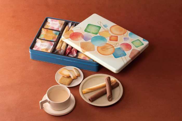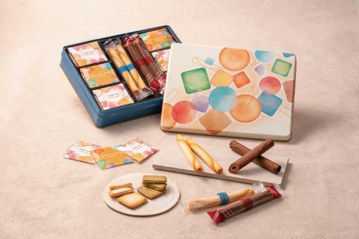 テーマは「クッキーパーティ」。カラフルなデザイン缶の中には、ロングセラーの「シガール®」やカカオ香る「カカオ シガール オゥ ショコラ」、さらに限定の「モカ ドゥーブル ショコラ」など、贈り物にもぴったりな4種類の焼き菓子が入っています♪
