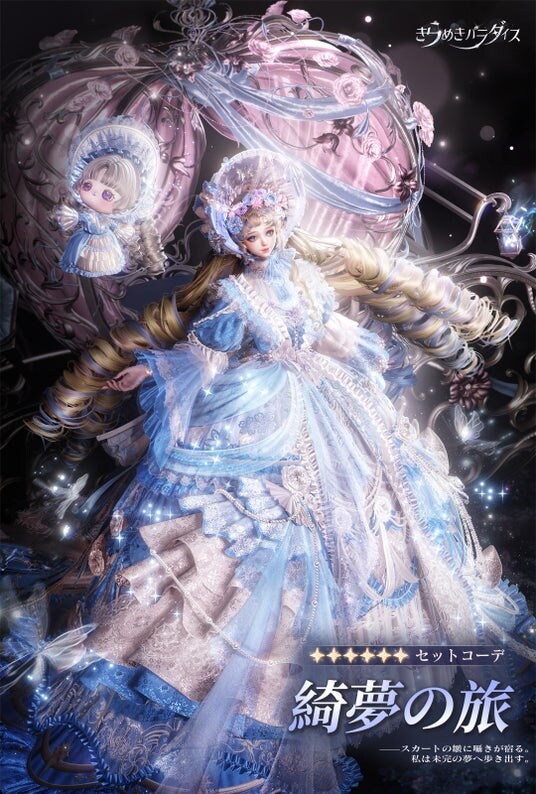 本日(11月6日)より、期間限定で『きらめきパラダイス』新Ver.3.5夢謡の綺境がついに登場!今回のアップデートでは、「カボチャの馬車、プリンセス、華やかな舞踏会の夢」をテーマにした星6セット『綺夢の旅』と、無形文化遺産の第一人者・陳雲珍氏とのコラボにより誕生した星5セット『錦心蝶羽』が新登場!さらに、SSR絆ジキ・青白の縁生やイベントなど、豪華な新コンテンツが盛りだくさん!真夜中の約束を胸に、果てしないおとぎ話の世界へ。星をめぐって、とびきりスイートなひとときを!