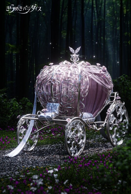 おとぎ話の魔法がかかるその瞬間、くるりと回るたび、スカートはシンプルな装いから徐々に豪華なローブへと変化していきます。そして、夢を乗せた馬車が現れ、まるで儀式のように幻想的でドラマチックなひとときを演出します。