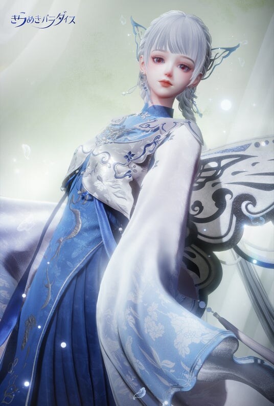 今回登場する星5セット「錦心蝶羽」の制作において、陳先生は開発チームと力を合わせ、幾度にもわたる創作のぶつかり合いを経て、吉祥・変化・永遠の美を象徴する「蝶恋花」の文様を、繊細かつ丹念にドレスのデザインへ融合させました。これは陳先生が『きらめきパラダイス』の皆様に託した、真心がこもった想いと願いでもあります。
