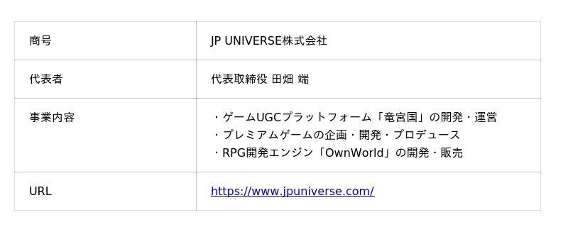 JP UNIVERSEは 「竜宮国」 を通じて、誰もが創造・経済活動に参加できる次世代のクリエイターエコノミーを創出していきます。 「竜宮国」 は2026年にβ版サービス開始を予定しています。