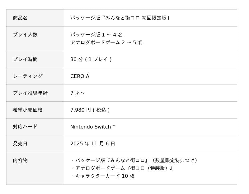 なお、パッケージ版とアナログボードゲーム『街コロ(特装版)』がセットになった『みんなと街コロ 初回限定版』は1000個限定となります。