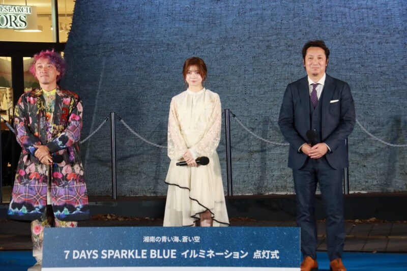 初日に開催されたイルミネーション点灯式には、住商アーバン開発株式会社 テラスモール湘南事業所の相澤秀之所長、美術家の奥中章人さん、俳優の桜田ひよりさんが登壇。