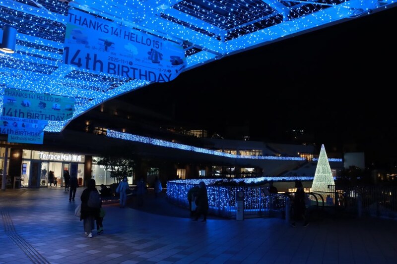 今年のテラスモール湘南のイルミネーションは「湘南の青い海、蒼い空 7DAYS SPARKLE BLUE」をテーマに、2026年2月15日までの期間、湘南の景色を表現したイルミネーションが行われるほか、色鮮やかに輝く15mを超える巨大ツリーが登場。