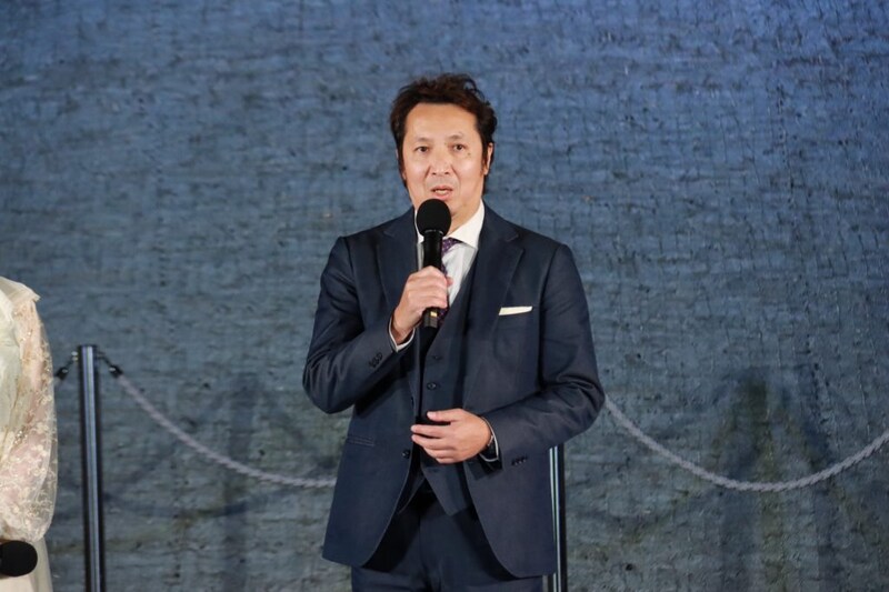「僕は、アート作品はこのようなパブリックスペースで、皆さんの往来の中の交差点になってほしいと考えています。色々な世代の方々が集うこのショッピングモールの中で、作品の中に入ると6トンのウォーターベッドで浮遊体験ができます。太陽が昇れば色が変わり、そのような体験に心身を投じて鑑賞していただければ、人々の思いがつながり合うのではないかと思います。ぜひ今週末のアートイベントにお越しいただければ嬉しいです。」