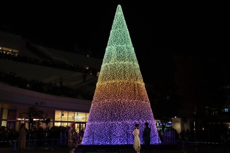 その後、集まった観客と一緒にカウントダウンを行い、巨大ツリーがライトアップ。