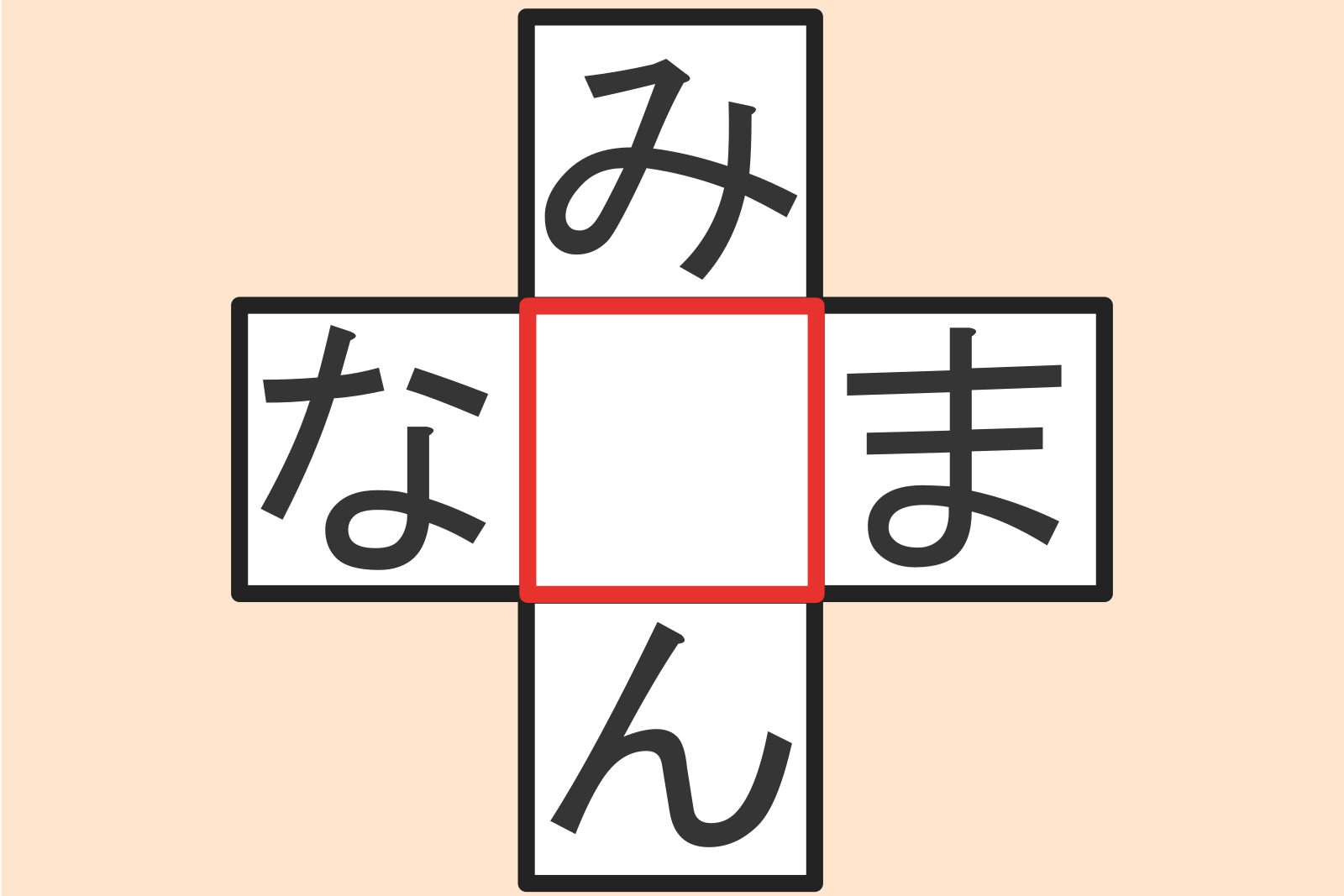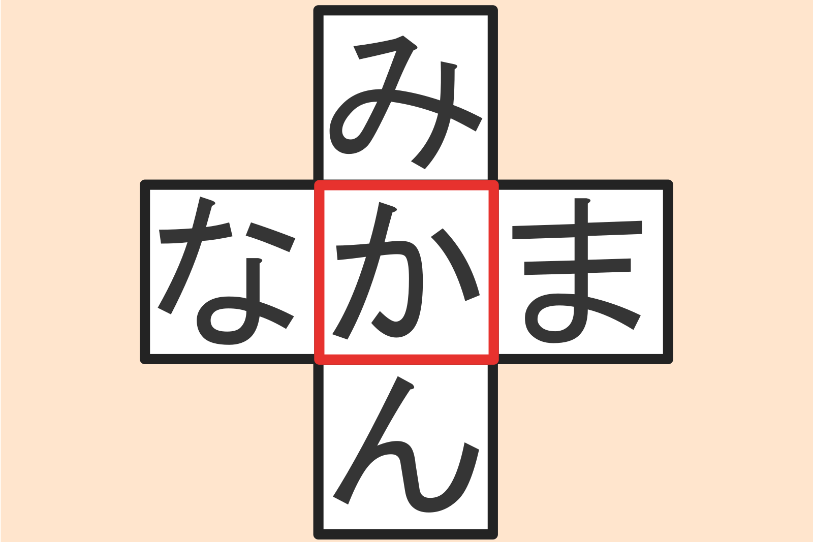【問題】空欄に入る文字は? 【ヒント】タテ:冬にこたつに入りながら食べたくなる果物 ヨコ:み~んな友達!
