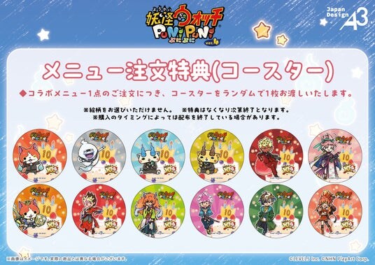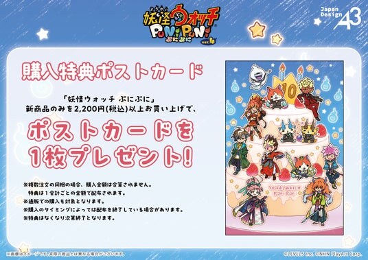 『妖怪ウォッチ ぷにぷに』新商品のみを、1会計2,200円(税込)以上お買い上げいただくと、特典としてポストカード(全1種)をプレゼント!