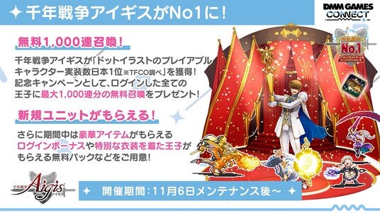 No,1を記念して、過去最大級の無料召喚キャンペーンなど豪華イベント盛りだくさん!