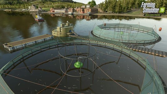 「Highlands Fishing」では、スコットランドのハイランド地方に着想を得た新マップ「キンレイグ」が登場いたします。緑豊かな丘陵地帯と広大な水辺が広がる本マップでは、農場の運営に加えて、新たな農業形態「水産養殖」を体験することが可能です。水産養殖では、漁船を操ってサーモンやニジマスなどの魚類を養殖・育成・収穫できるほか、岸辺で釣りを楽しむことができます。水産養殖に対応する機械も新たに収録。Monosem、Can-Am、AgriSpread、GT Bunningの4つのブランドから、水陸両用の機械を含む20種類以上の新車両および農機が登場いたします。さらに、新作物・タマネギや新たな動物種・ハイランド牛が追加されるほか、歴史ある城などの新たな建設プロジェクトもお楽しみいただけます。