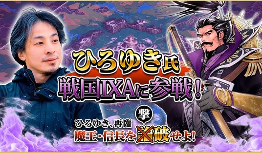 株式会社スクウェア・エニックス(本社:東京都新宿区、代表取締役社長:桐生 隆司、以下スクウェア・エニックス)は、本格オンライン戦国シミュレーションカードゲーム『戦国IXA (イクサ)』におきまして、2025年11月21日からゲーム内にてひろゆき氏とのコラボイベントを開催すること、及び11月21日(金)、11月23日(日)の2回に渡り配信する公式生放送に、ひろゆき氏の生出演が決定したことをお知らせいたします。