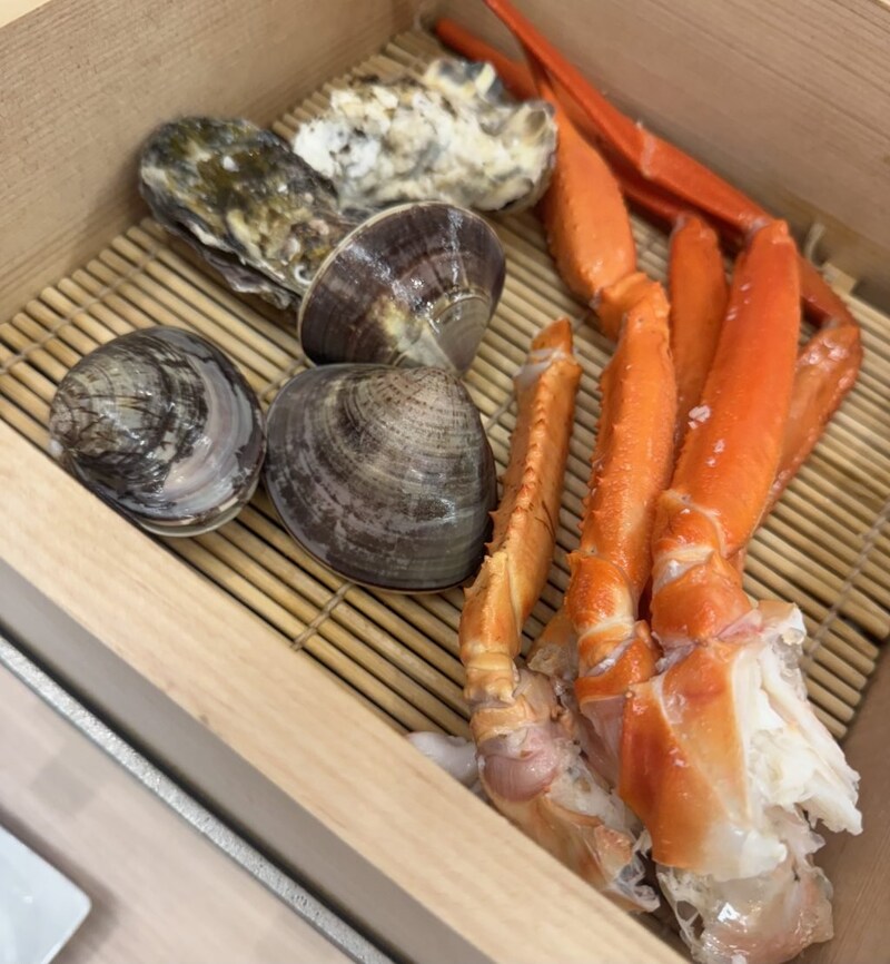 地産地消にこだわったメニューが用意されていて、その土地ならではの魅力ある風味や食文化を楽しめることもポイント。金沢といえばの海鮮を存分に楽しめます。紅ズワイガニ、ホタテ、アワビなどをテーブルにある蒸し器で蒸していただきます。