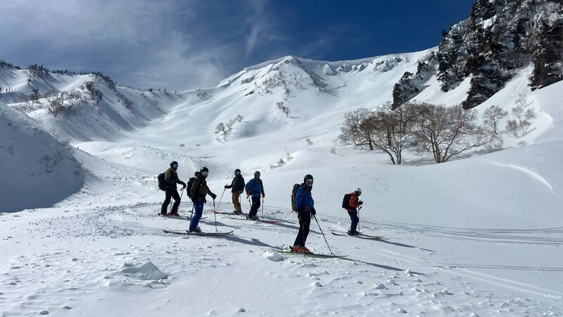 パウダーシーズンのツアー参加者は増加傾向ですが、4月以降の残雪期のツアー参加者はあまり増えていない感じがしています。春のツアーでは、スキーやスプリットボードの機動力を生かして広範囲に移動したり、登山要素が多くなることも楽しさの1つです。そんな楽しみ方もたくさんの人に知ってほしいと思っています。