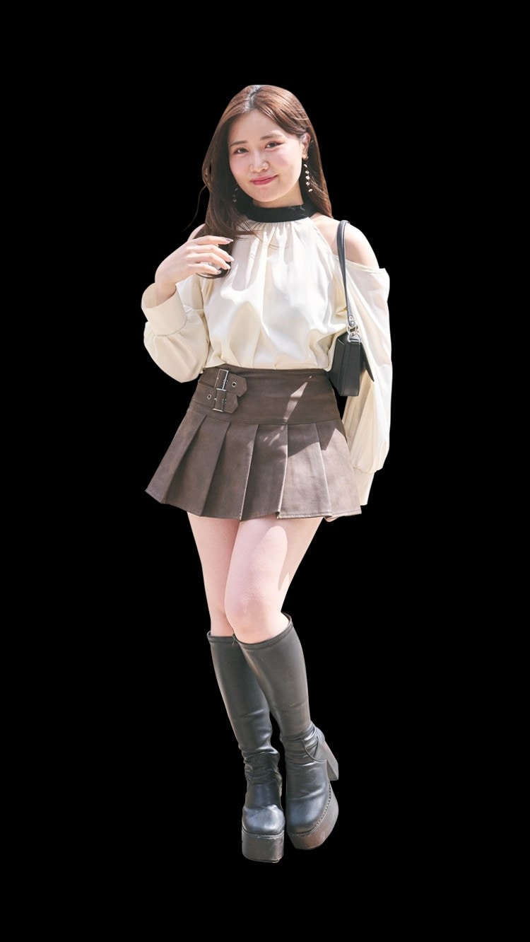 「Kerryのセットアップは、約8,600円。ブーツはGRLで約3,000円。バッグは韓国ブランドのStand Oilで約10,000円。