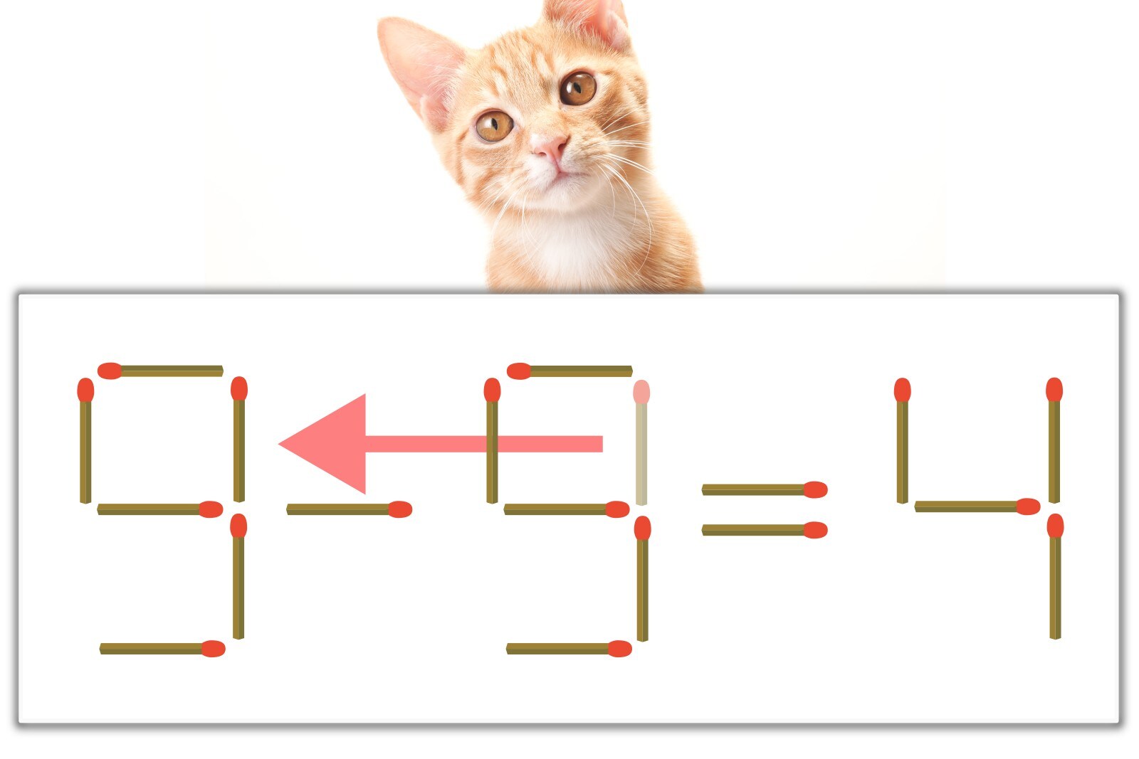 「9」のマッチ棒を1本、左にスライドさせて「9」を作り、「9-5=4」にする。※解答は複数ある場合があります。