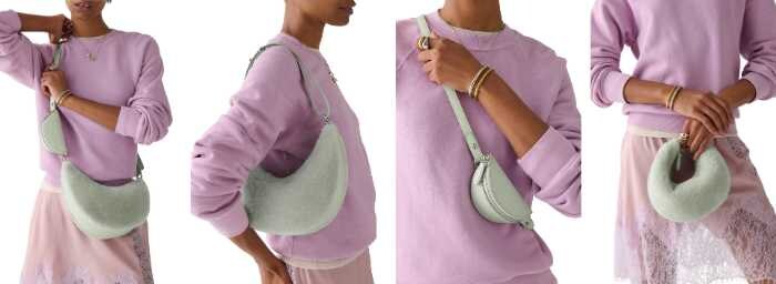 ふんわりとしたシアリング素材を採用した「ケーエスデュオ シアリング クロスボディ バッグ」は、冬の装いにやさしいミントグリーンが映えるアイテム。