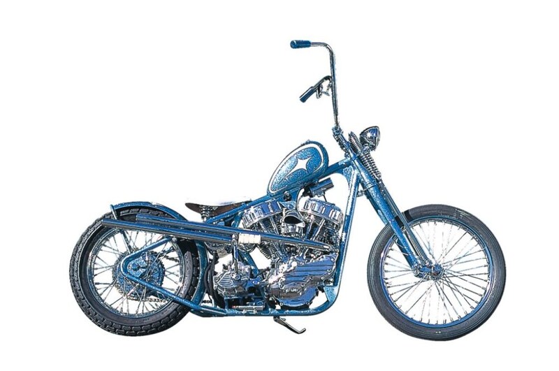 例えば、もともと50年代当時のバイカーたちが、それぞれのガレージで作り上げたことがチョッパーの起源といわれているのだが、キッチンにあったイスの脚を取り外し、装着することで生まれたというエイプハンガーやフェンダーのカットや変更、シートの小型化などが定番のモデファイ。これらはそもそも“個性”と“乗りやすさ”を求めて生まれたのだが、やがて徐々に装飾性を増し、チョッパーが発展していったという歴史をもつ。それを知れば、“チョッパーとはなんぞや”という答えが我々にも見えるのかもしれない。