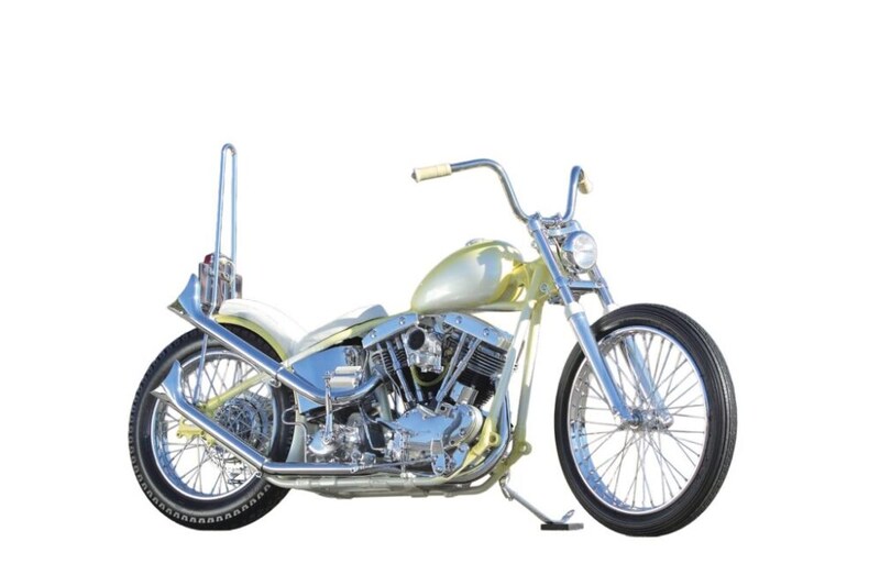 あたかもボバーからチョッパーへと変わる黎明期に生み出されたかのような雰囲気を漂わせるこの車両は大阪のシックスによる一台。古きよき時代に生産されたハーレーという素材はもともとがリジッドフレームゆえに、ハンドルの変更やシッシーバーの装着のみでチョッパーらしい姿となるのだが、こうした純正の魅力を活かしたマシンも魅力だ。http://www.shix-mc.com