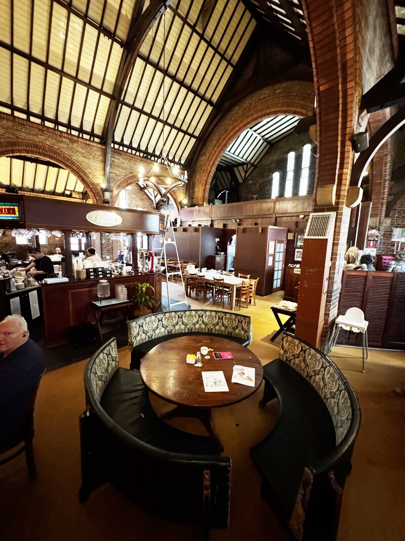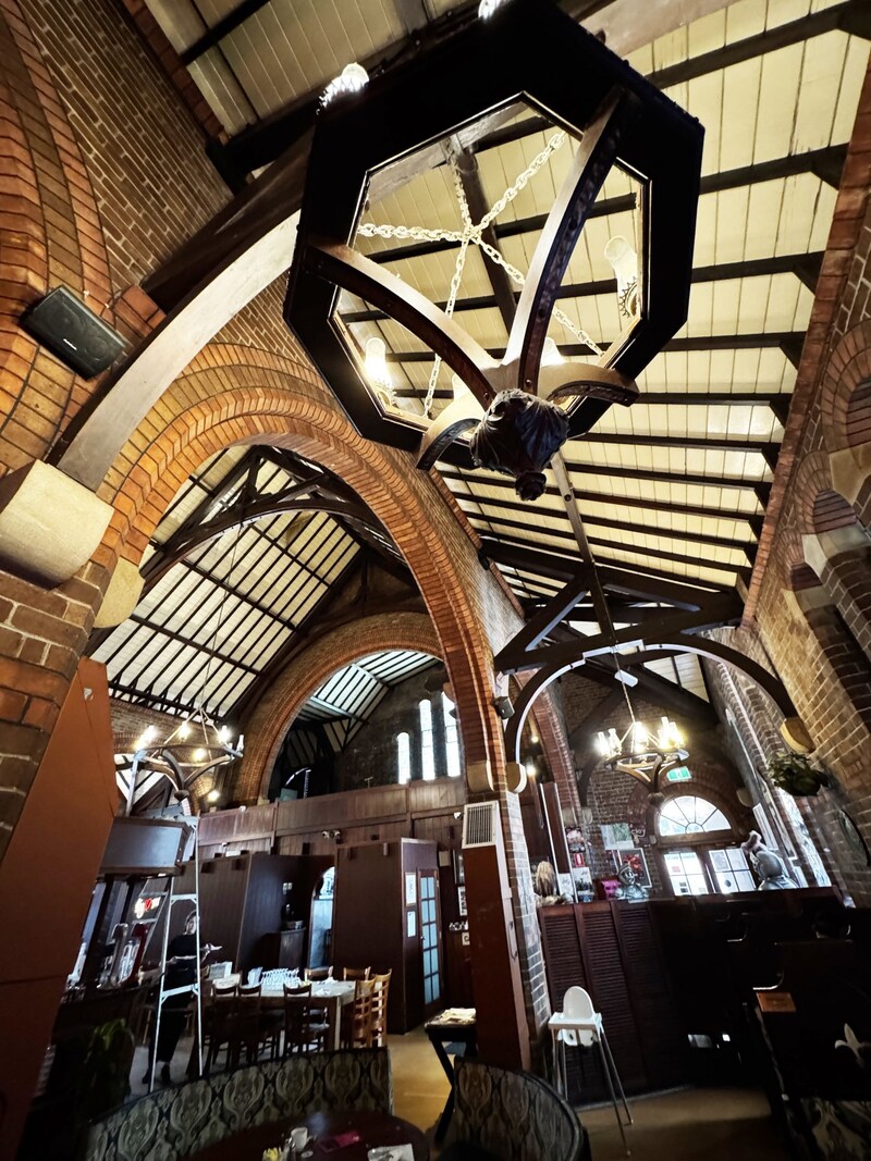天井がとても高く、太めの柱で構成された店内。ここが神聖な場所だったと思うと、それだけで癒やされる気持ちになります。数年、数十年、百年遡れば、ここで祈っていた人がいたのだなぁ。
