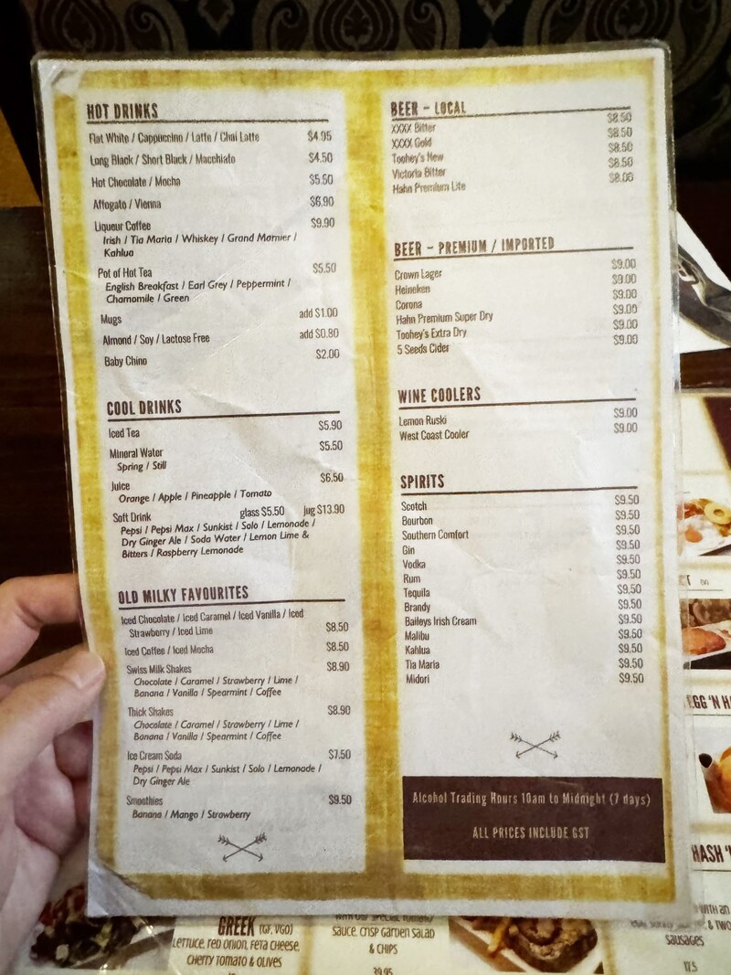 ドリンクメニューを見てみると、おおっ! ビールやカクテルも飲める。でもまだ昼間なので、レモンティーにしました。ちなみに、シェイクも名物らしいです。甘いパンケーキと、甘いシェイク、エネルギー充填で癒やされたいときは最高かもしれない。