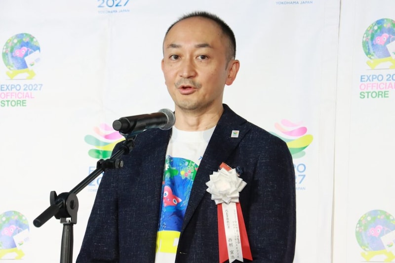 商品発表会に登壇した、2027年国際園芸博覧会マスターライセンスオフィス 代表業務執行者の西村宣浩氏は、