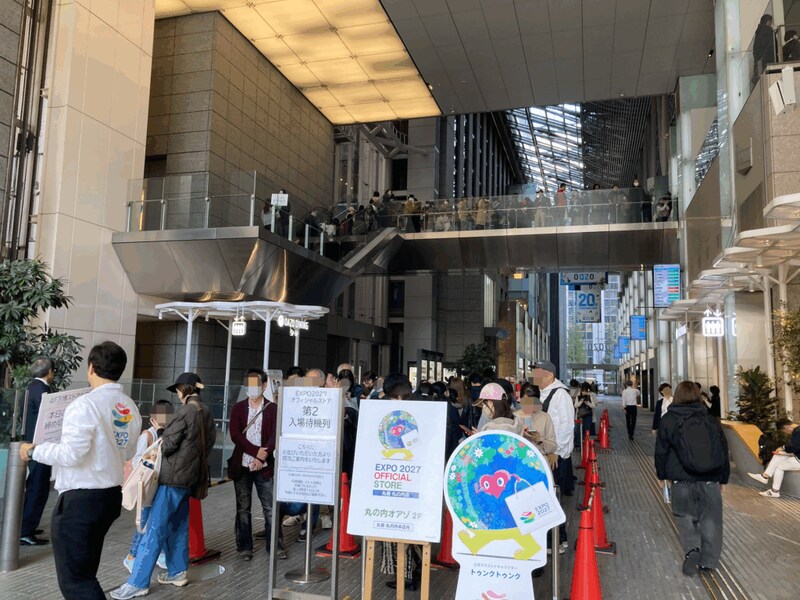 EXPO 2027 オフィシャルストア 丸善 丸の内店には、朝の7時頃から列が並び始めるなど反響も大きく、オープン直前には多くの方で行列ができていたほどの賑わいを見せている。